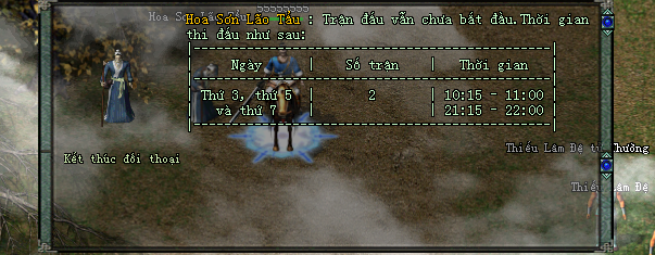 Nhân sỹ báo danh tham gia sẽ được đưa vào bản đồ đặc biệt, sau thời gian báo danh tất cả người chơi sẽ được đưa về 1 bản đồ duy nhất, nơi đây sẽ là nơi tranh tài của chư vị anh hùng, các nhân sỹ sẽ PK lẫn nhau, không phân biệt phe phái, bang hội, người còn sống sót cuối cùng là người chiến thắng.