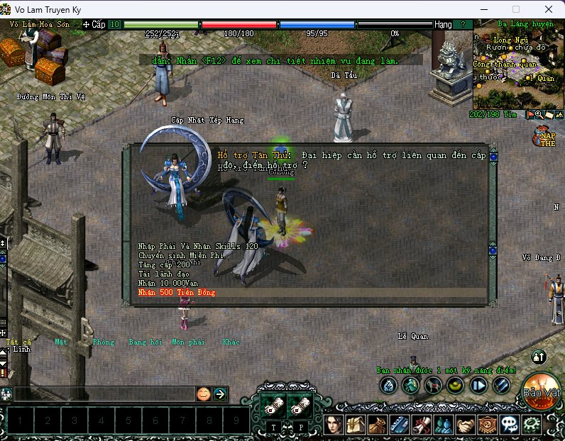 Mở chức năng nhận trang bị và vật phẩm miễn phí tại NPC Hỗ trợ tân thủ.
